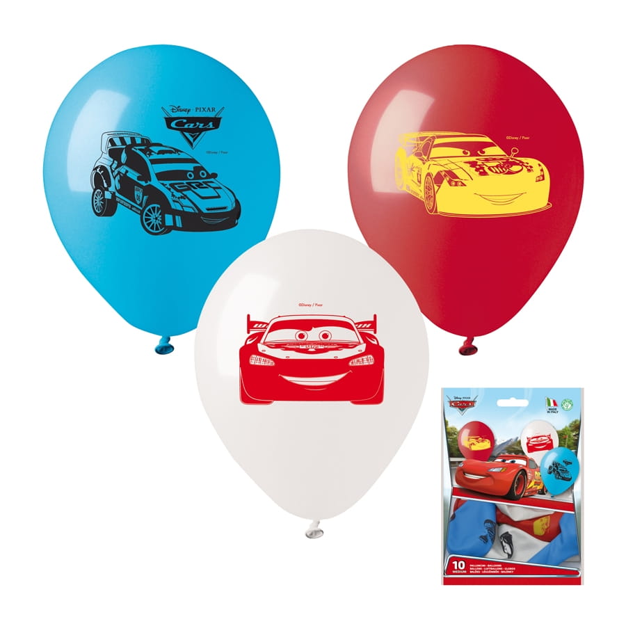 Flash McQueen ne vous abandonnera pas pour ce goûter d'anniversaire. Il vous fait redécouvrir tout son univers à travers ce sachet de 10 ballons Cars. Chaque ballon est sous licence Disney et fait 26 cm de dimension. Les voitures de course sont dessinées sur des ballons blancs, bleus ou rouges, à accrocher un peu partout pour une vraie déco de champion !