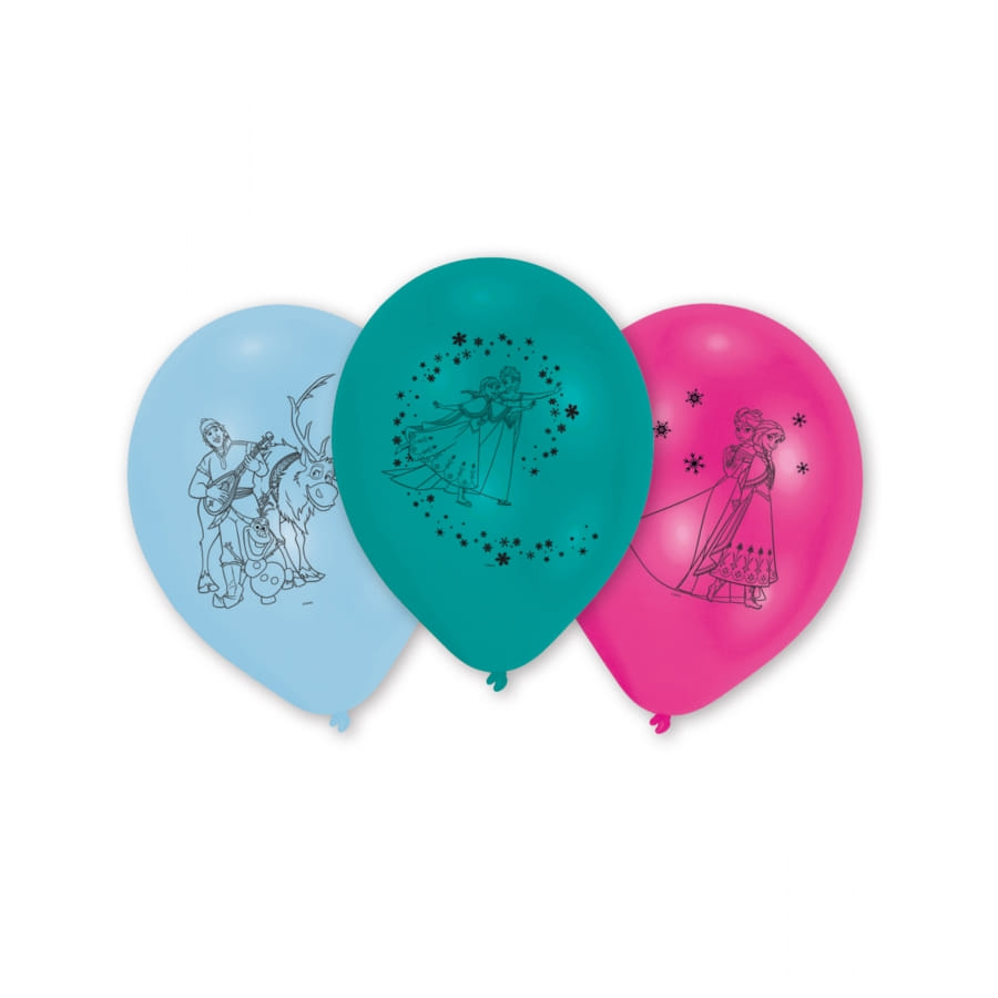 Les ballons présentent chacun des personnages du film Disney La Reine des Neiges imprimés en noir.