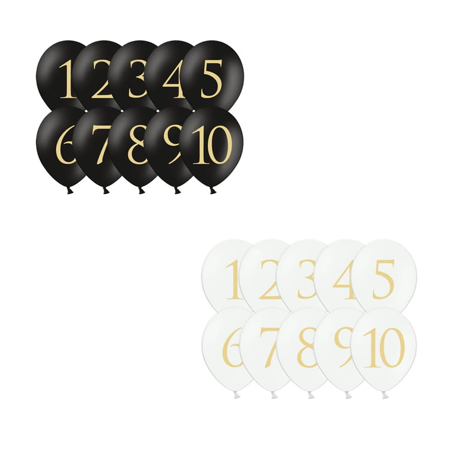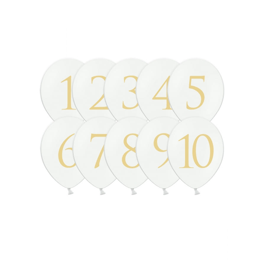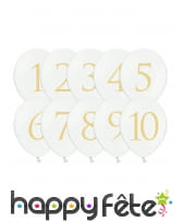 Numérotez vos tables d'anniversaire en toute originalité, avec ces 10 ballons ronds imprimé chiffre de 1 à 10.