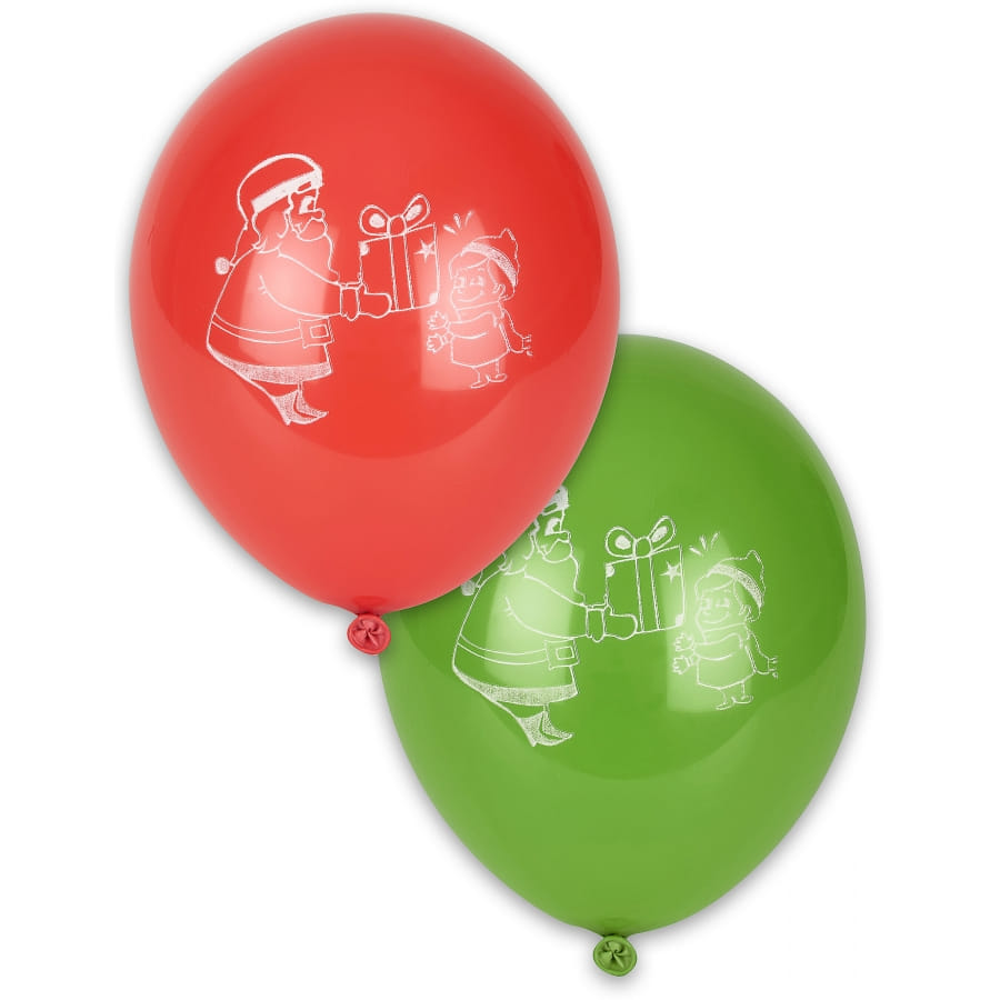 Le père Noël va envahir la maison cette année ! Les enfants seront ravis de retrouver le célèbre personnage à travers des éléments décoratifs. Commandez sans plus tarder ce lot de 10 ballons rouges et verts papa Noël. Il comporte 5 ballons rouges et 5 ballons verts, chacun imprimés de motifs père Noël et enfant en blanc. Les ballons sont en caoutchouc naturel biodégradable et chacun d'eux fait 28 cm de dimension environ.