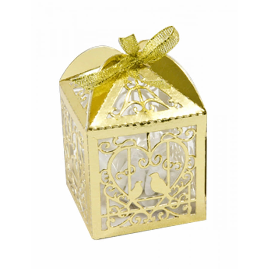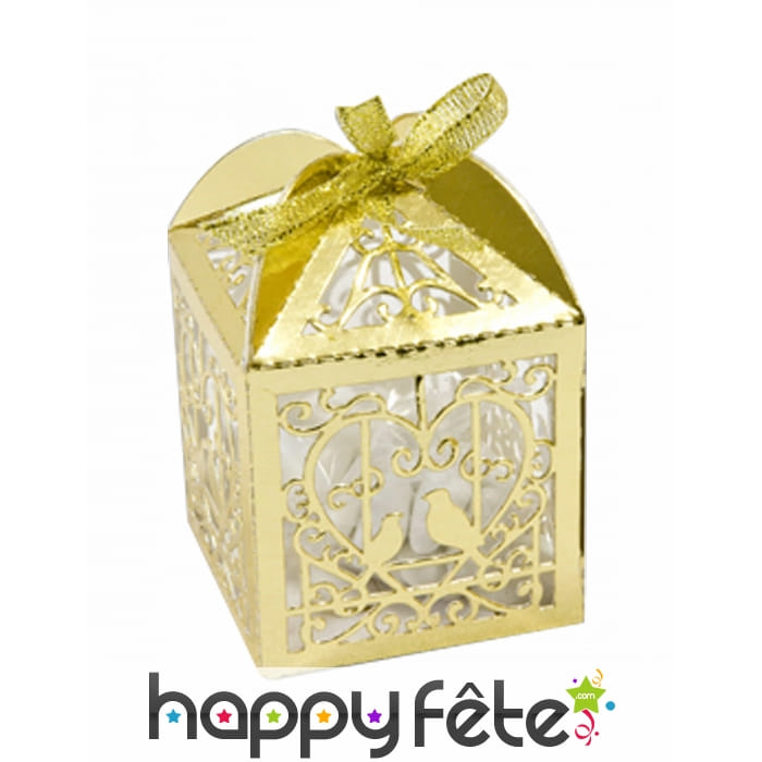 Mettez la barre haut pour votre déco de mariage ou de Noël, avec les 10 boites dorées décorées de coeurs, 5 cm.