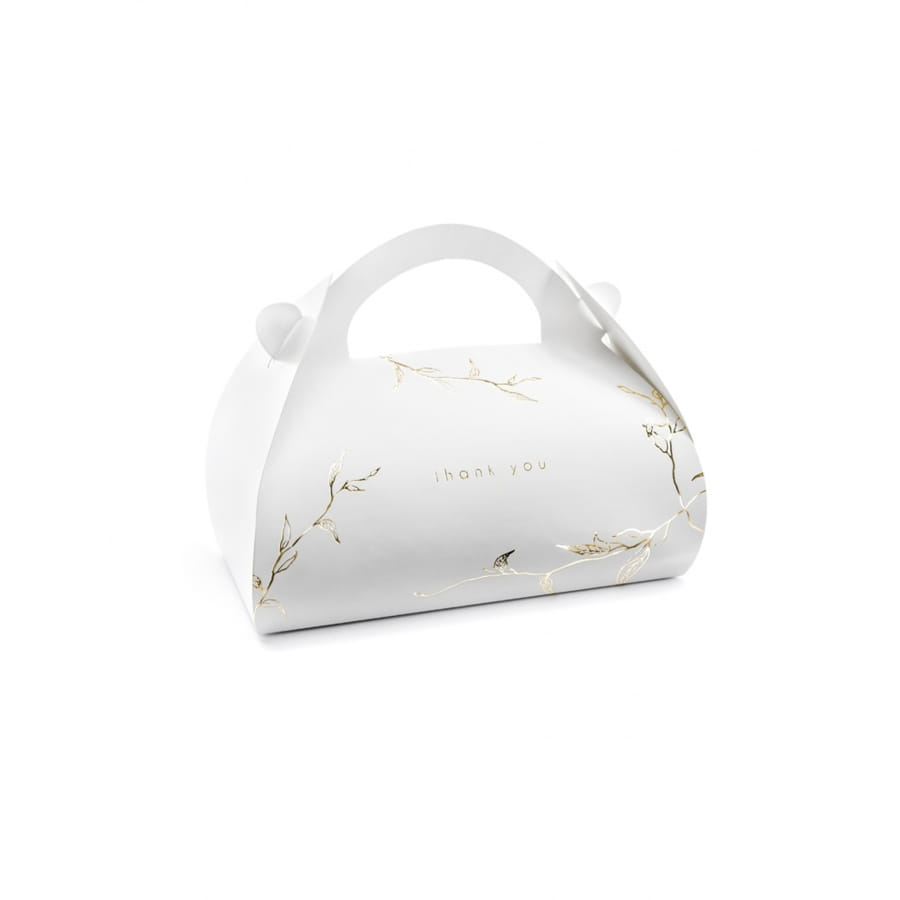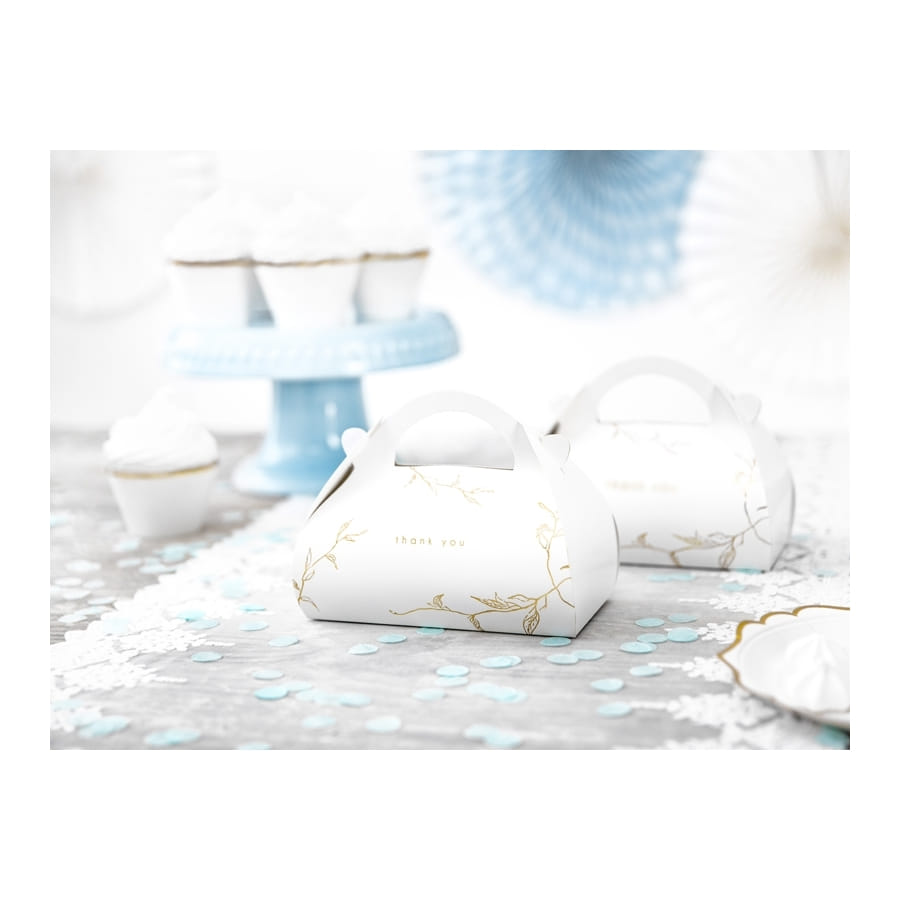 Apportez une note originale à une déco de mariage qui sort de l'ordinaire, vec les 10 boîtes en carton blanc imprimées Thank You 16 cm.