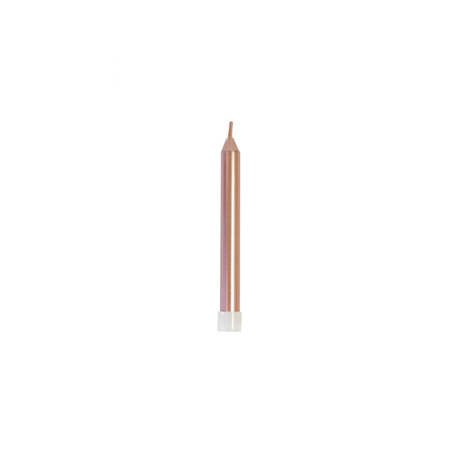 Les 10 bougies d'anniversaire de couleur rose métallisées sont longues de 7 cm.