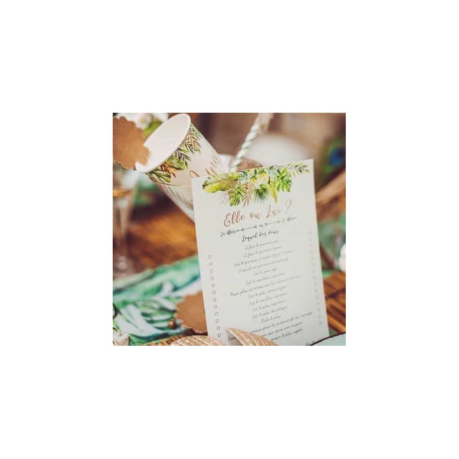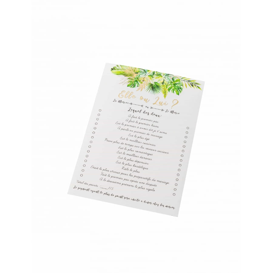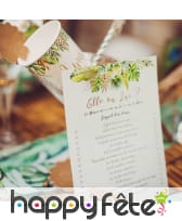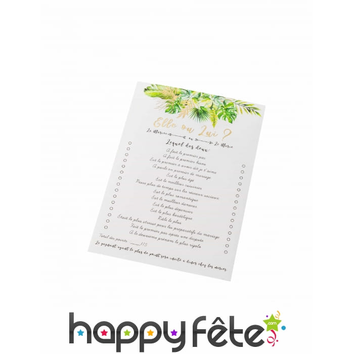 Qui est le plus romantique, etc.) permettront aux invités de cocher les cases appropriées, pour établir qui d'entre eux connaît le mieux les mariés.