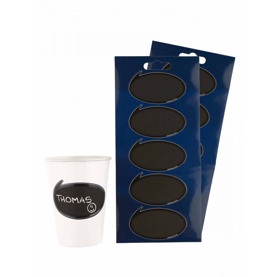 Les 10 étiquettes nom à gratter pour gobelets sont noirs.