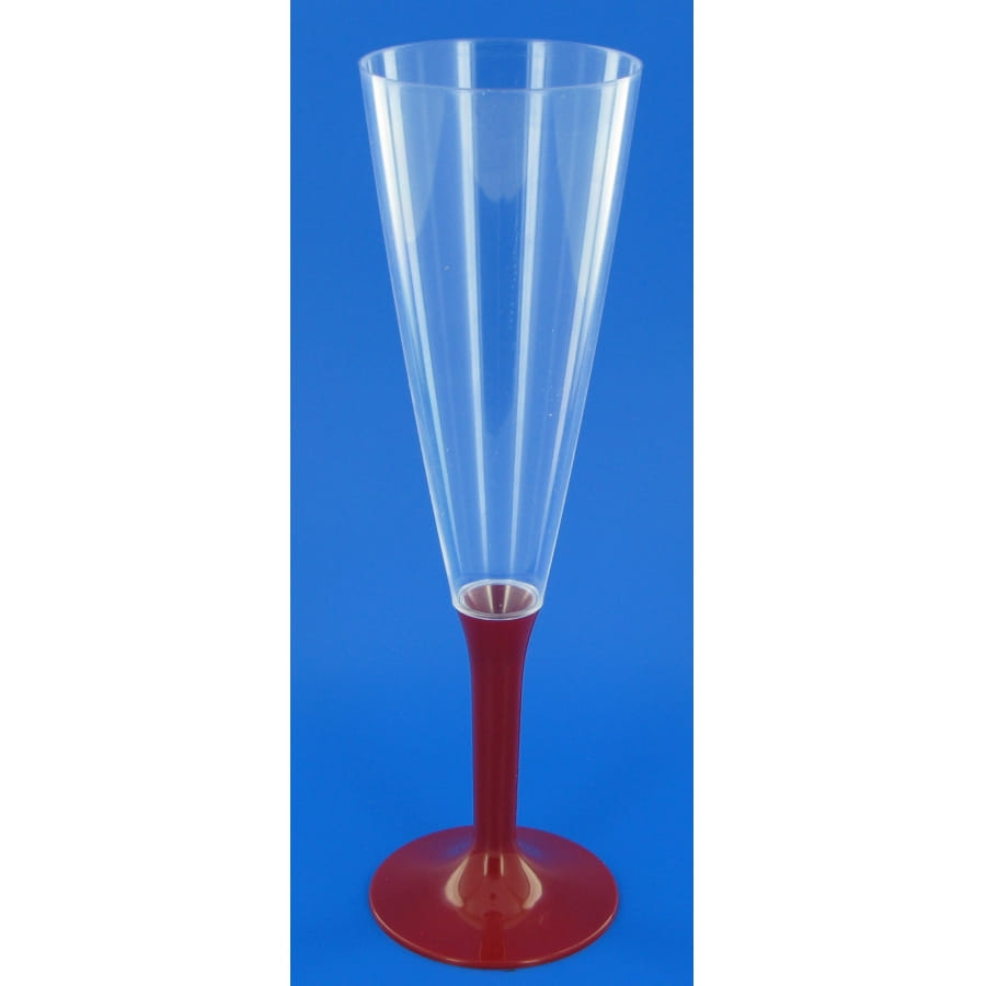 Sachet contenant 10 flûtes à champagne transparents à pieds de couleur bordeaux. Sortez-les lors d'occasions telles qu'anniversaires, mariages ou goûters de Pâques.