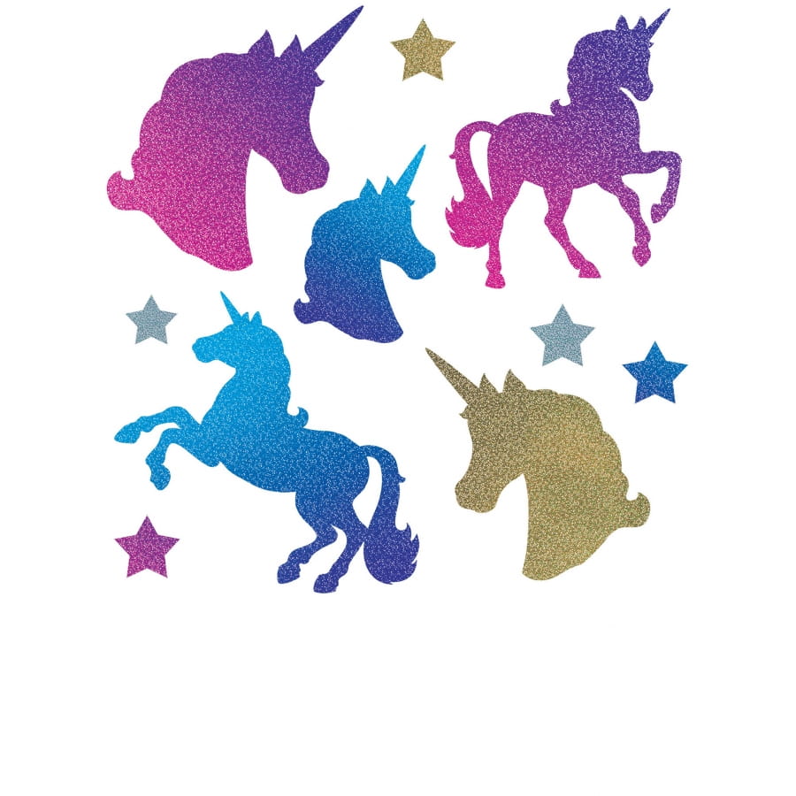 Faites-vous une décoration féerique pendant un anniversaire ou tout autre fête grâce à ce lot de 10 licornes en carton pailletées.