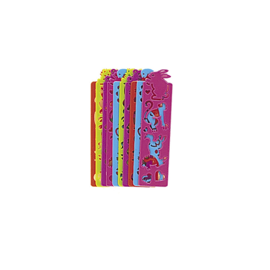 Ce lot de 10 petites règles à dessins pour enfant comporte plusieurs modèles de différentes couleurs.