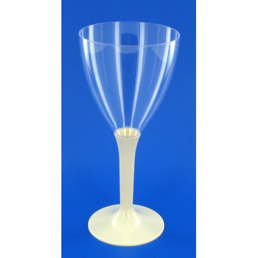 Verres à vin transparents à pied de couleur ivoire, vendus en sachet de 10. Cette couleur de verre à vin ira parfaitement à votre décoration de mariage, d'anniversaire ou de Nouvel An.