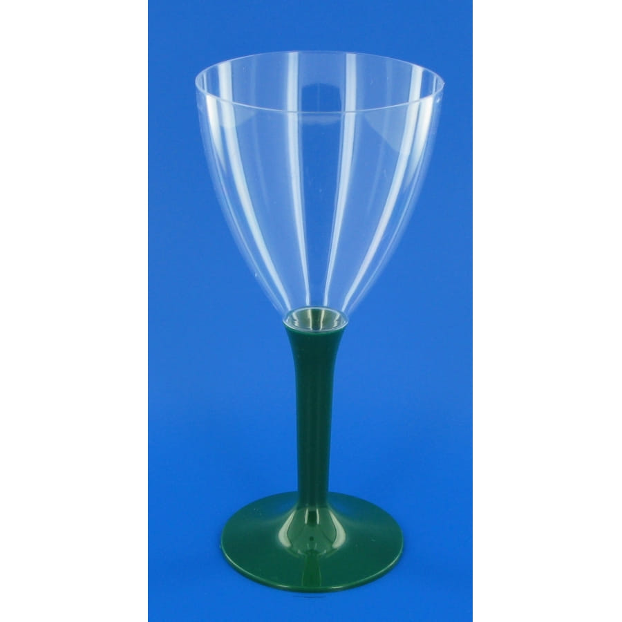 Verres à vin transparents à pied de couleur vert sapin, vendus en sachet de 10. Sortez ces sublimes petits verres à vin à l'occasion de la Noël et du Nouvel An pour un couvert assorti à votre décoration!