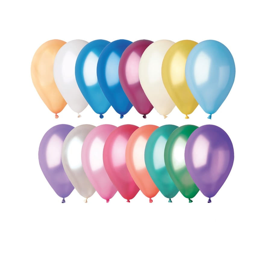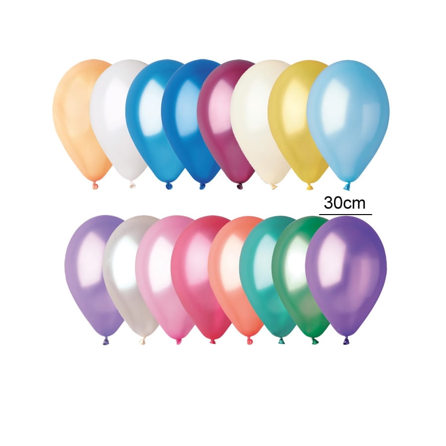 Lot de 100 ballons métallisés (nacré brillant) pour vos fêtes comme la pacques ou le nouvel an. Ou tout simplement vous célébrez une naissance cet accessoire de fête sera idéal. Vous pouvez les gonfler à l'air ou à l'hélium cet accessoire de fête a pour diamètre 30cm avec une circonférence de 85cm en latex 100% naturel et biodégradable.