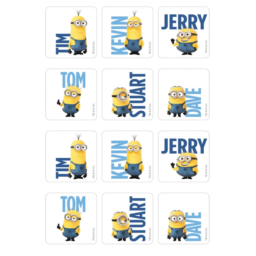 Chaque pièce mesure environ 6,1cm x 7.3cm et est floquée d'un Minion avec son nom.