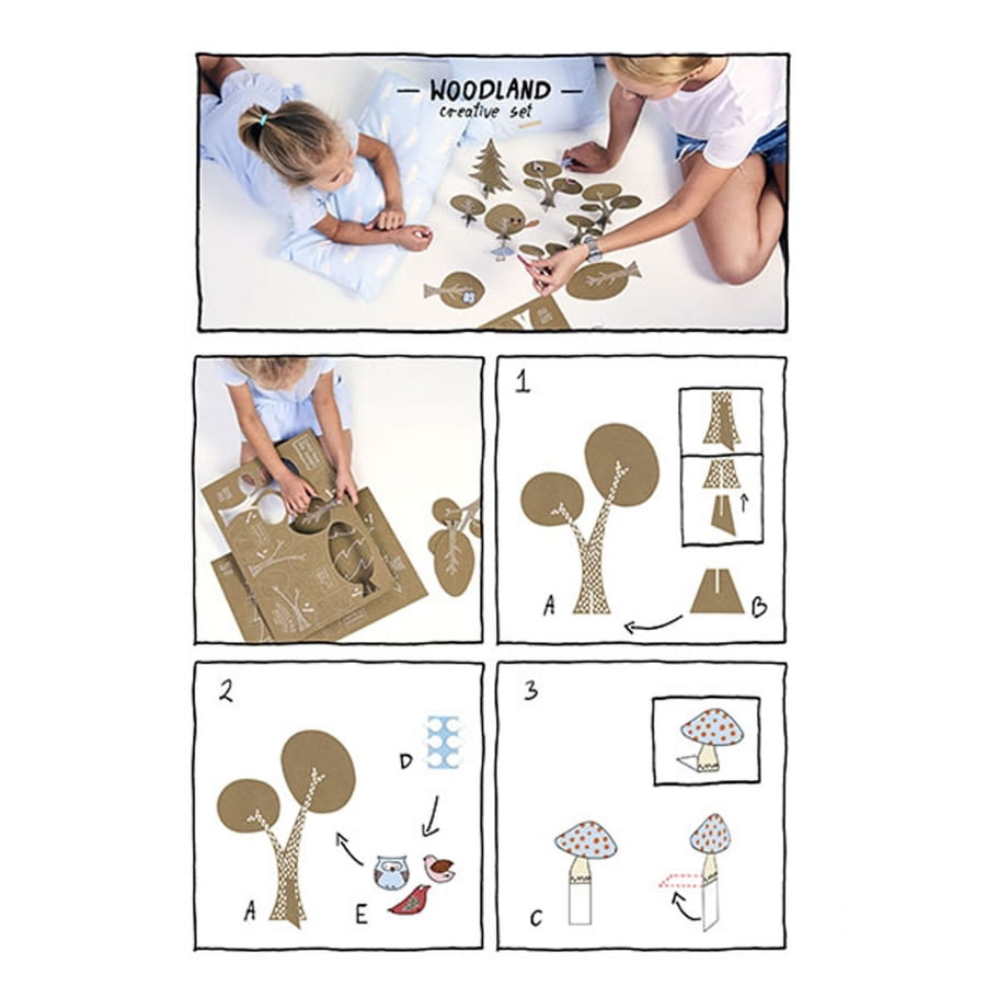 Les décorations présentent les formes de plusieurs plantes et arbres de forêt, parmi lesquelles des sapins et des champignons.