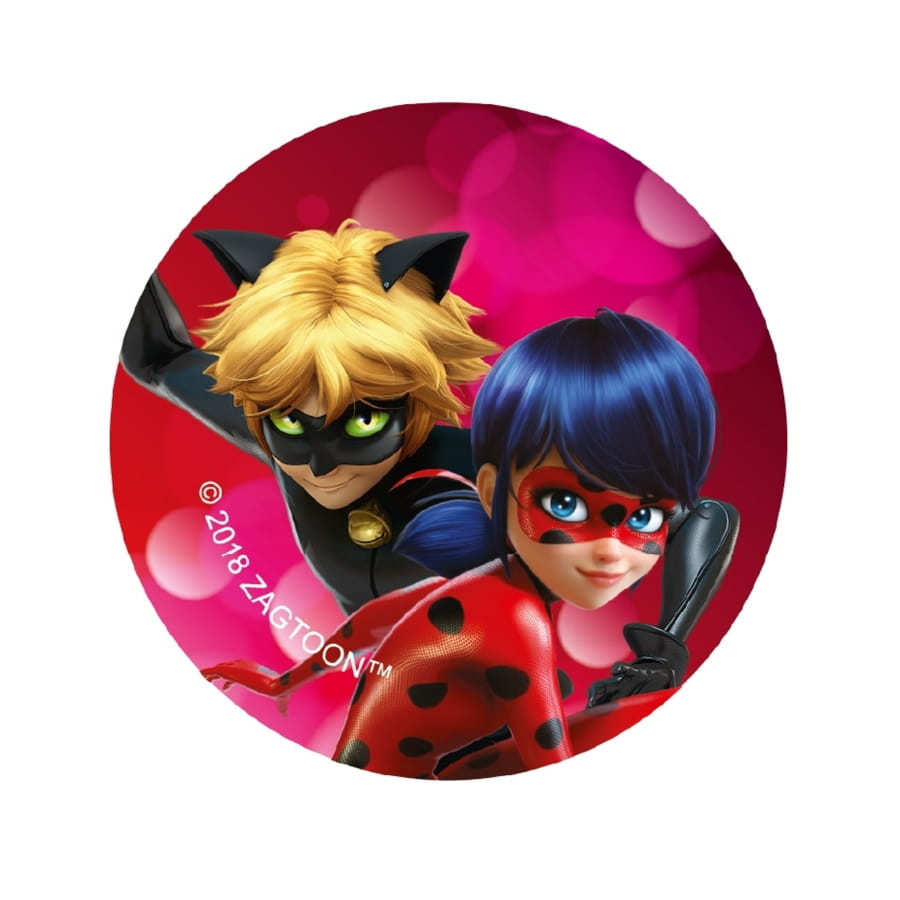 Sur un fond rouge ou rose, elles présentent les dessins de Ladybug, chat noir, Tikki et plagg.