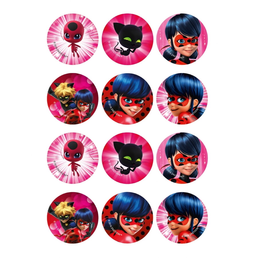 Les 12 décorations pour biscuits Ladybug de 6 cm sont en sucre.