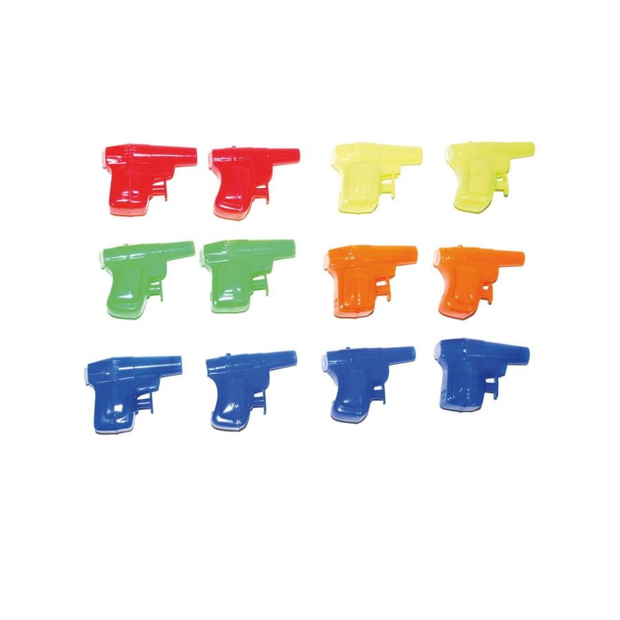 Organisez un super moment de détente en offrant, pour la prochaine kermesse, le lot de 12 mini révolvers à eau multicolores de 6cm.