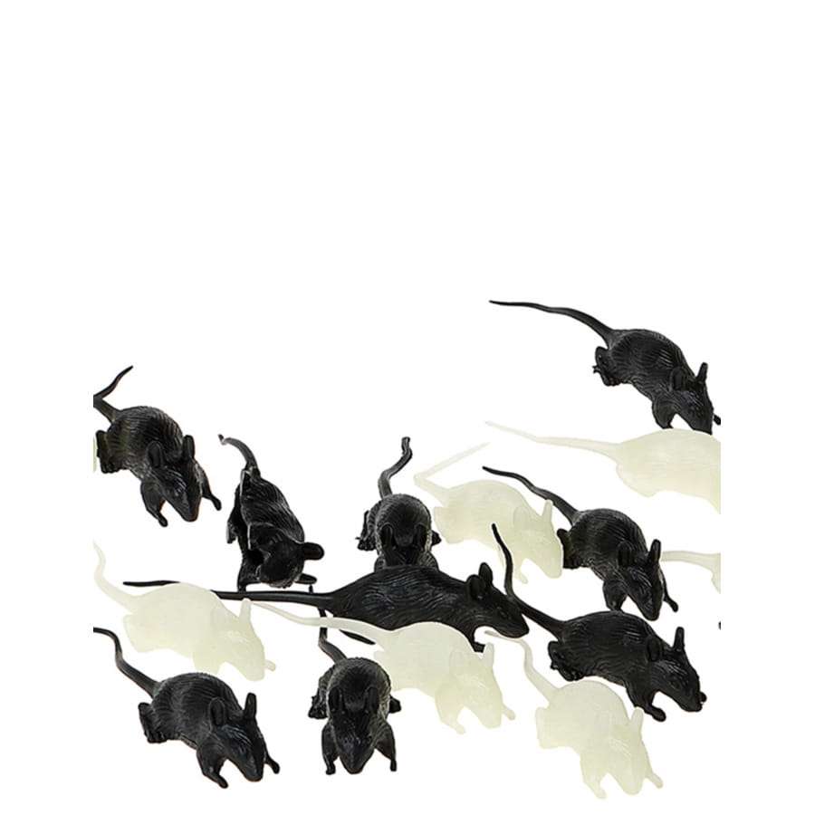 Les 12 petits rats dont 6 phosphorescents et 6 noirs de 4 cm sont en plastique.