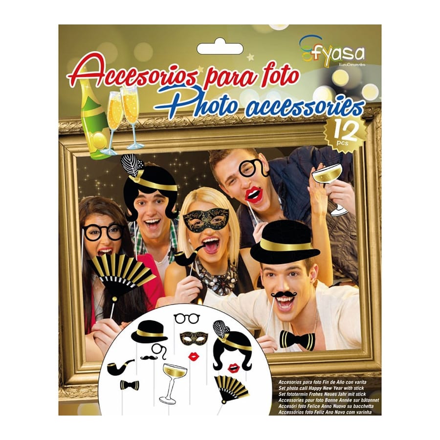 Ce kit photobooth vous offrira une superbe animation entre amis lors d'une soirée de Nouvel an de folie.