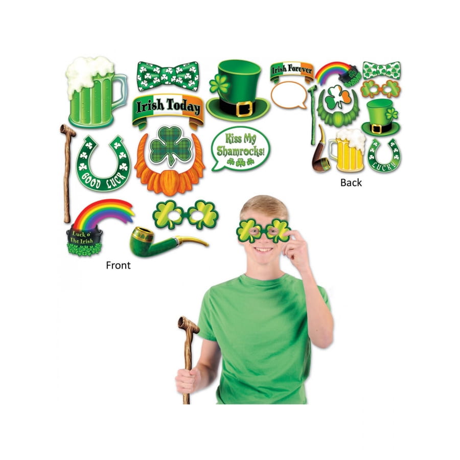 Ses éléments pour photobooth sont imprimés d'images sur le thème de la Saint Patrick.