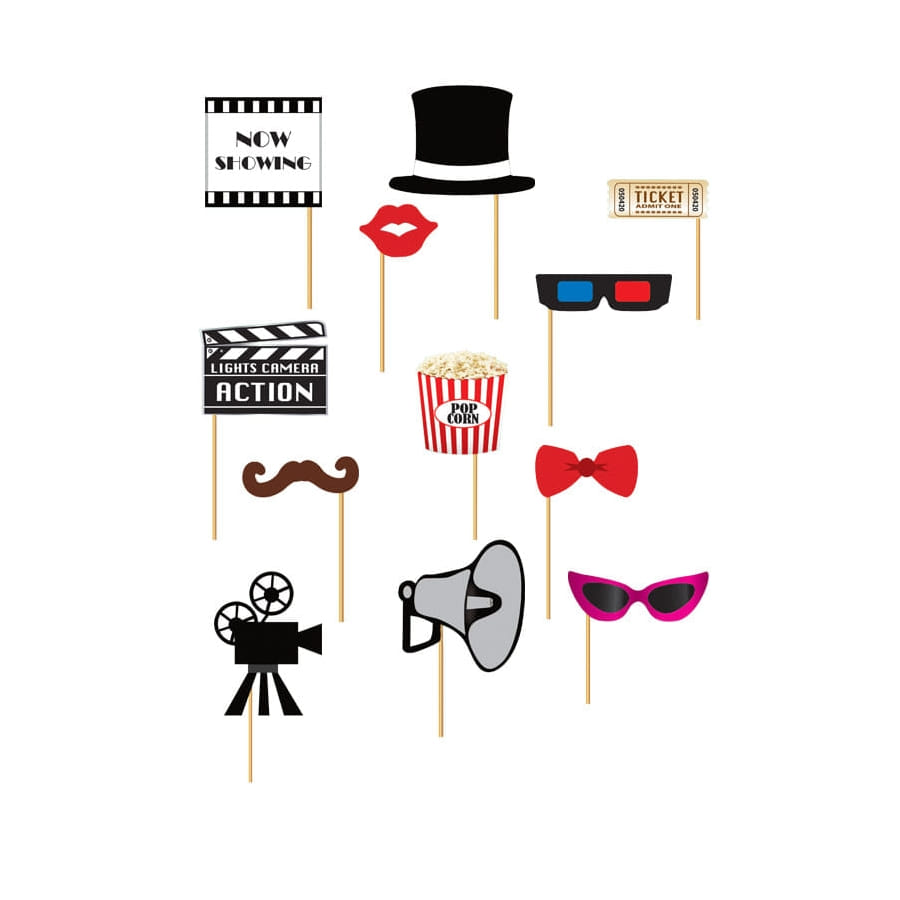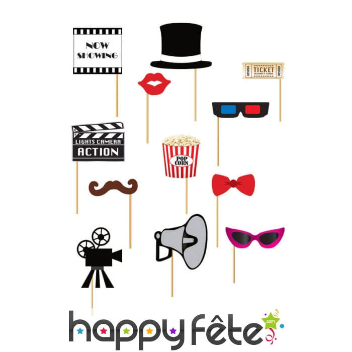 Pour animer de manière amusante une soirée sur le thème du cinéma des années 20 ou une séance photo, laissez-vous séduire par ce lot de 12 pièces photobooth.