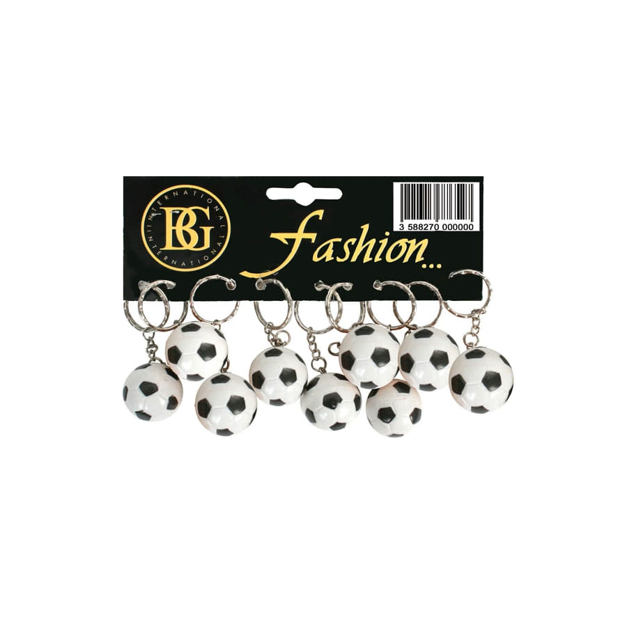 Porte-clefs en forme de ballons de foot de couleur blanche et noire, vendus en lot de 12. Chacun des ballons possède un diamètre de 3 centimètres. Distribuez-les aux enfants présents lors d'une kermesse ou d'un évènement sportif.