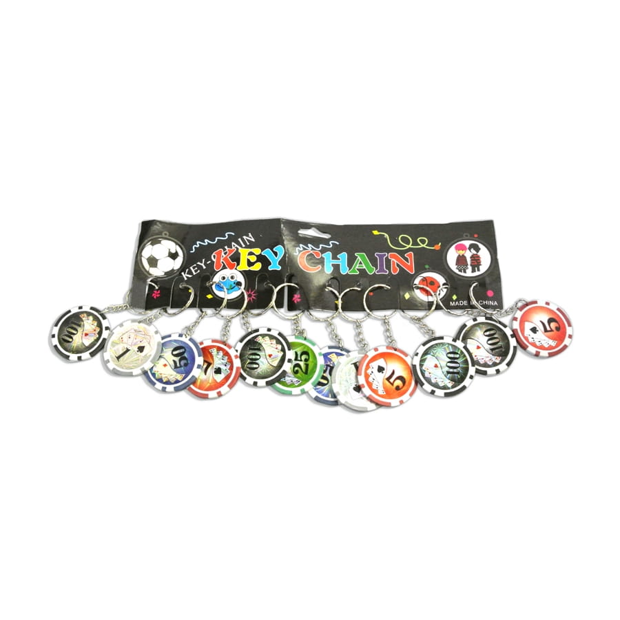 Avec ce lot de 12 porte-clefs jetons de casino multicolores, vous pourrez choisir celui que vous aimeriez accrocher à votre sac à dos, sur vos petites trousses ou bien sur votre clé USB. De forme ronde, avec quelques billets et des montants différents, ils vont certes décorer, mais peut-être surtout vous apporter de la chance, tout comme au casino !