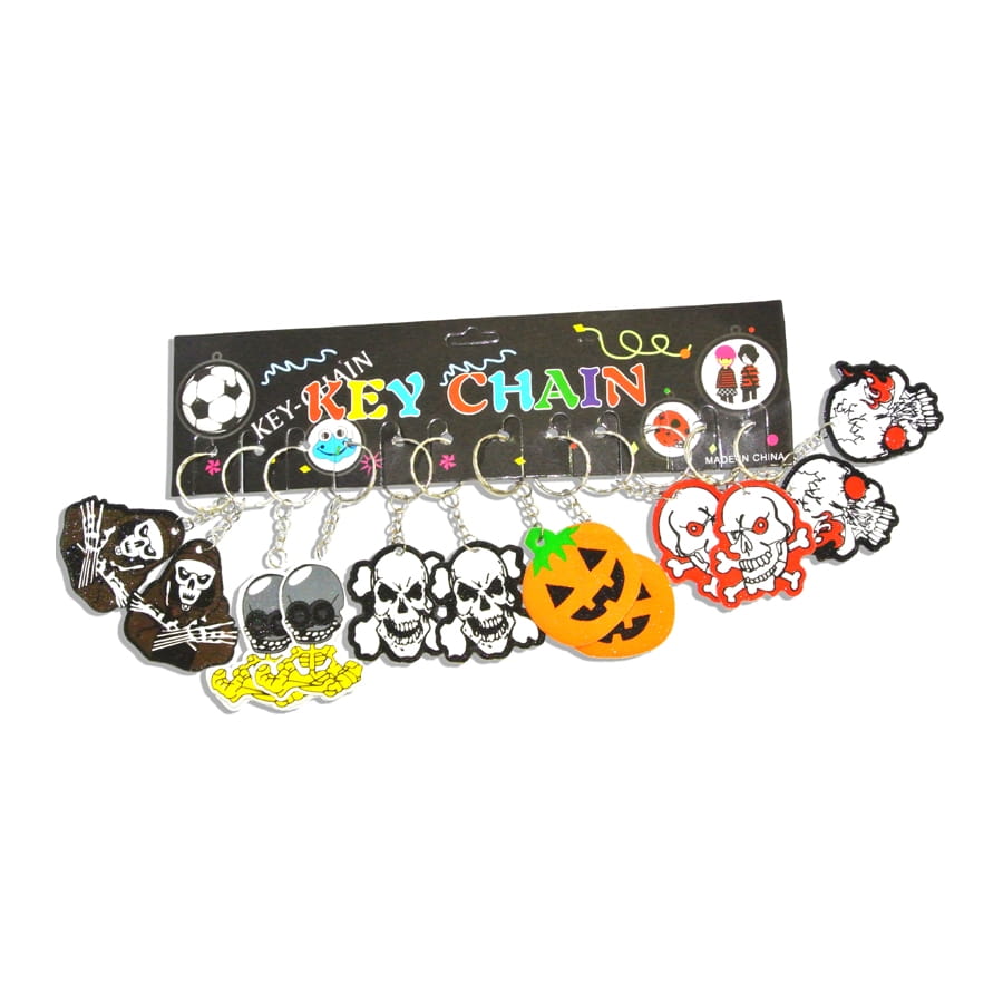 Voici une carte de 12 porte-clefs pirates en mousse. Ils sont imprimés des 2 côtés, de motif adulte tels que des citrouilles, des têtes de mort, multicolores. Ces porte-clefs pourront être accrochés à vos trousseaux de clés, ou pourront être utilisé à l'occasion d'Halloween ; comme cadeau d'arrivée pour vos invités par exemple.