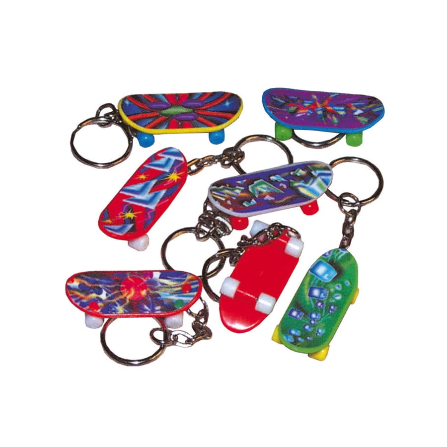 Vous ne savez pas quoi offrir a vos petits invités après la fête pourquoi ne pas leur offrir ce lot de douze porte clés planche à roulettes. Ils sont multicolores avec une petite chainette, ils font 4 centimètre de long.