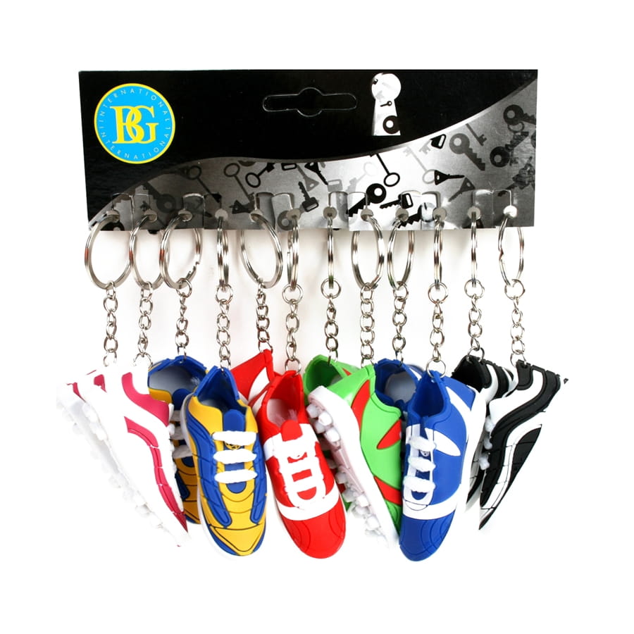 Voici un lot d'accessoires à offrir aux sportifs : 12 portes clés chaussures de foot. Ils conviendront parfaitement à un lot de kermesse. De nombreux modèles de chaussures sont pendus au bout de ces porte-clés, avec divers coloris telles que le rouge, le bleu, le vert etc. Les couleurs pourront néanmoins légèrement varier de la photo, d'autant qu'il n'est pas possible de les choisir en commandant. Chacun de ces accessoires fait 7 cm.