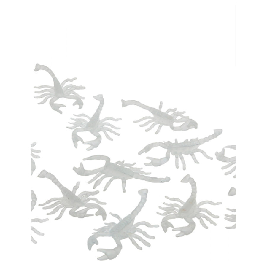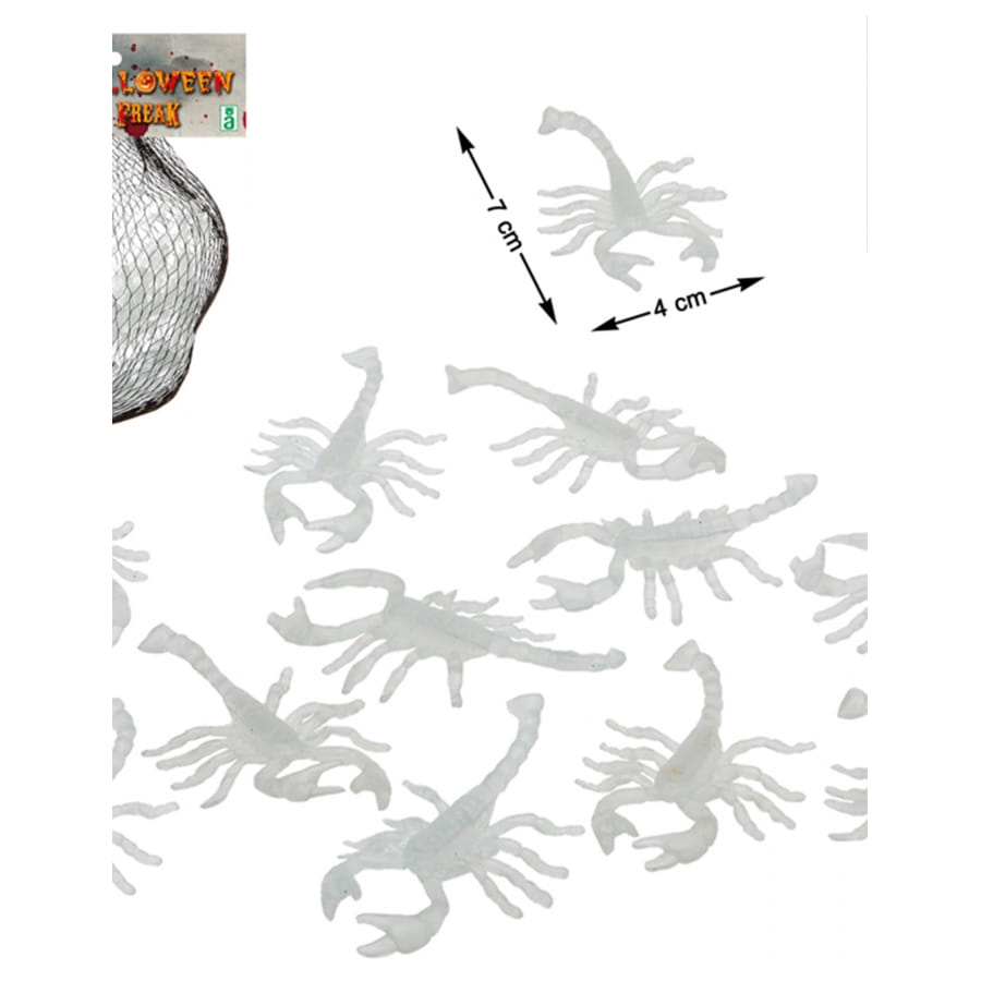 Les 12 scorpions en plastique phosphorescent mesurent chacun 7 cm.