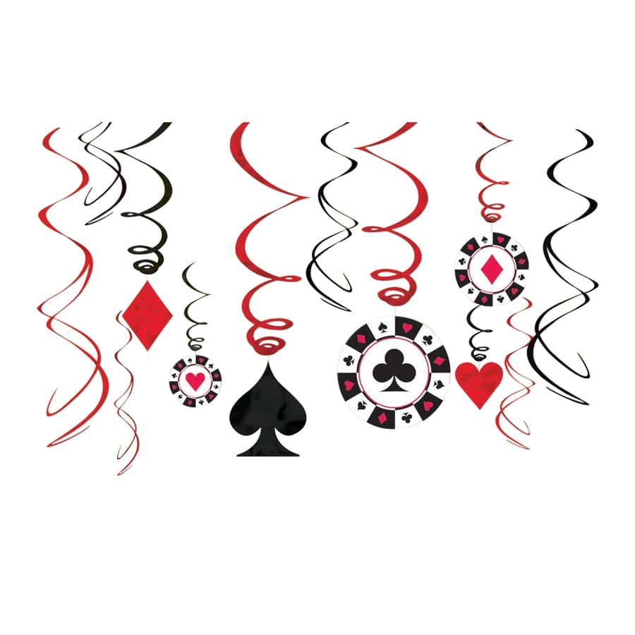 Coeur, carreau, pique et trèfle, les quatre couleurs d'un jeu de carte vous sont présentés à travers un article de décoration. Le lot de 12 suspensions Casino fait 61 cm de dimension. Les motifs sont présentés dans les couleurs rouge et noir. Ce modèle est recommandé pour un animer une grande occasion, sans oublier les jeux de carte à l'appui !