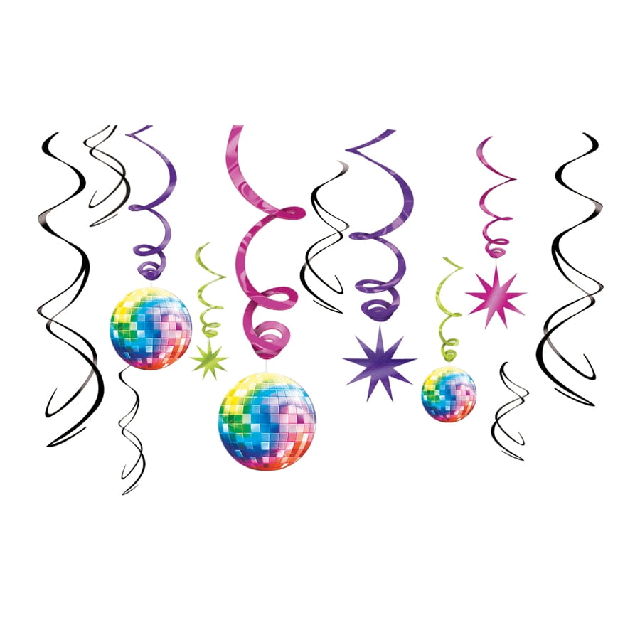 Du rythme, des couleurs et de l'ambiance à gogo, les années 70-80 nous ont fait découvrir la folie du disco. Le lot de 12 suspensions disco est parfait pour recréer cette atmosphère. Ces suspensions multicolores affichent des motifs à la disco fever. Leurs dimensions sont variées : 6 x 61 cm, 3 x 17,7 cm et 3 x 10,1 cm.