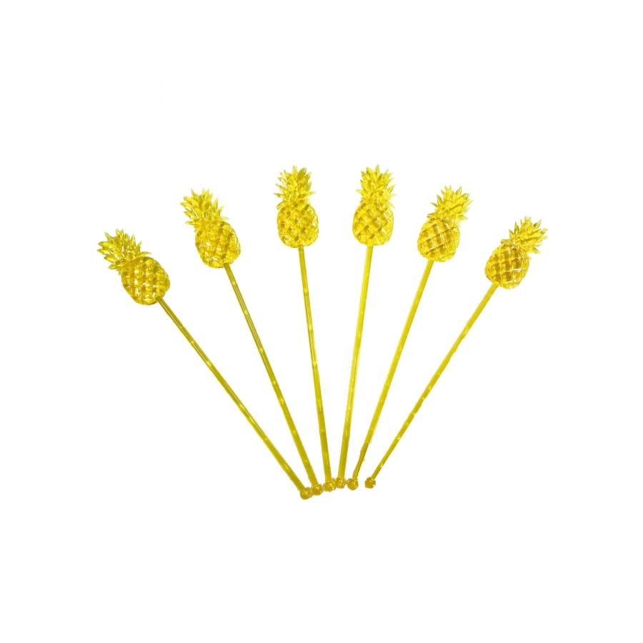 Les 12 touillettes cocktail ananas de 18 cm sont en plastique.
