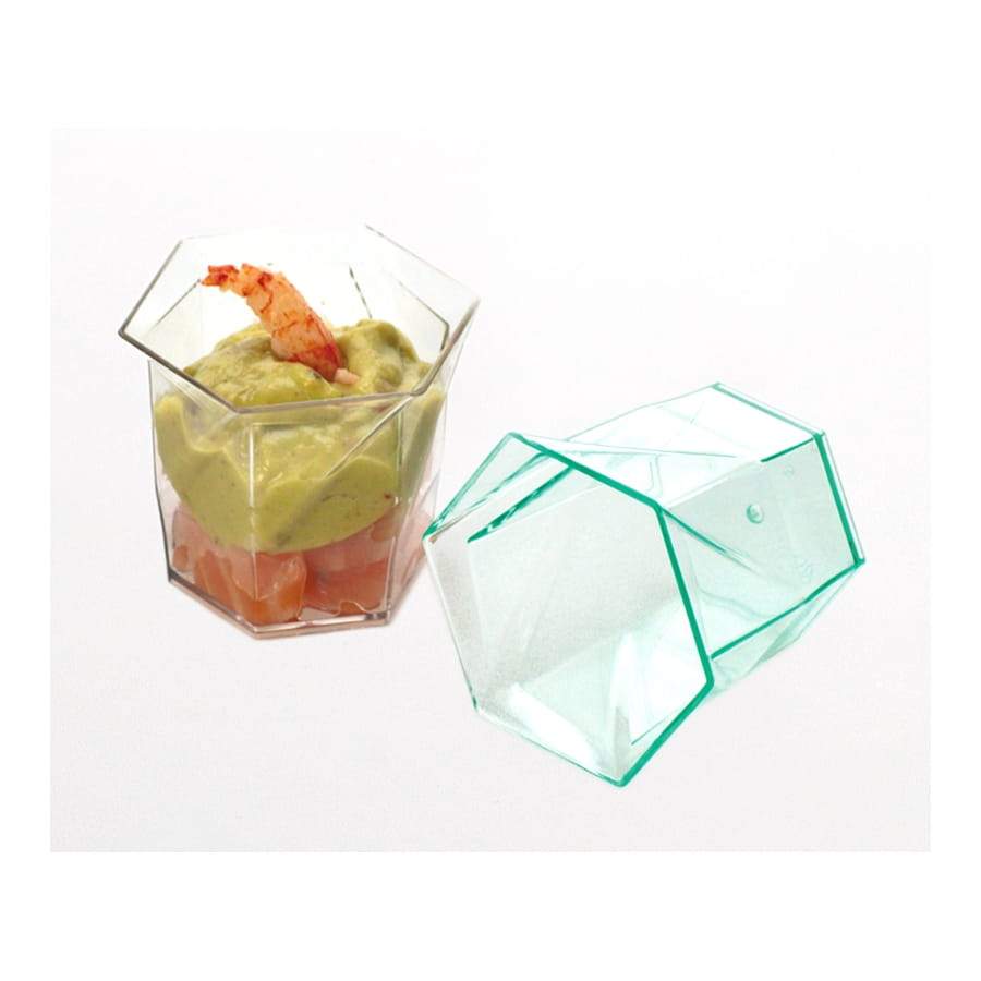 Il est toujours plaisant d'entendre des compliments fuser lorsque l'on organise une réception, surtout quand nos invités nous flattent par rapport à notre cuisine et la manière dont nous les présentons. Si la présentation des plats n'est pas vraiment votre fort, vous n'avez qu'à les disposer minutieusement dans des verrines! Nous vous conseillons ces verrines hexagonales, ayant l'aspect d'un cristal transparent. Leur capacité est de 6 cl et elles sont vendues par lot de 12 et faites en plastique.