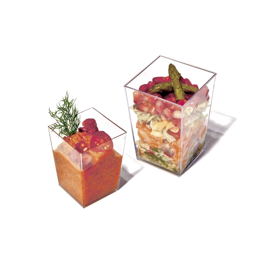 Afin de dévoiler au mieux votre talent dans l'art culinaire, adoptez des verrines transparentes. Celles-ci sont présentées par lot de 12 et ont chacune une contenance de 12 cl. Vous disposerez de verrines cristal, de forme carrée, dans lesquelles vous pourrez superposer plats et couleurs. Ce splendide article est parfait pour un mariage car il évoque classe et élégance, et il ouvre l'appétit !