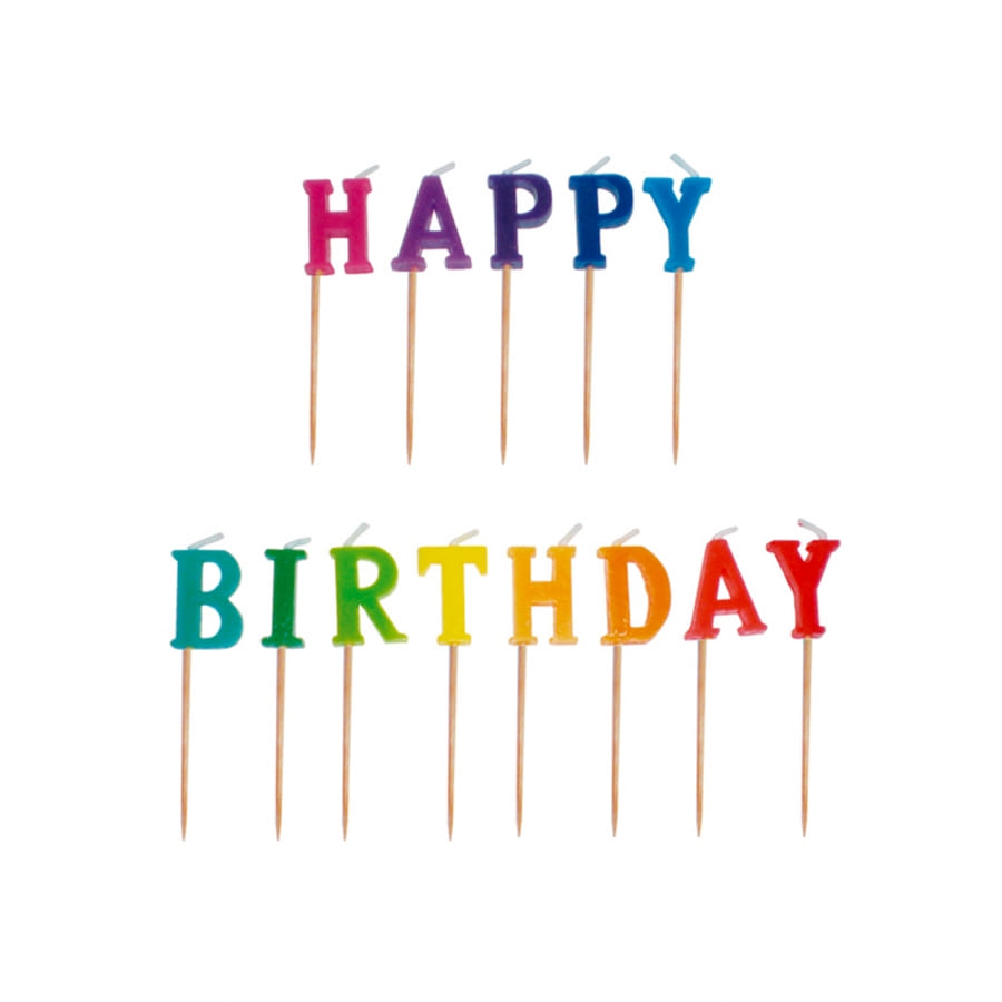Pour agrémenter une déco d'anniversaire, découvrez ces 13 Bougies Happy Birthday multicolores de 8 cm.