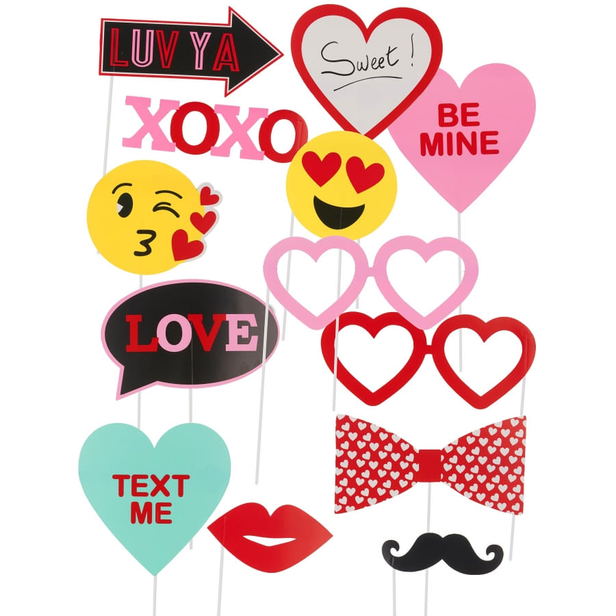 Les éléments du kit sont à utiliser avec des tiges en plastique blanc également fournies et qui serviront à les placer devant le visage pour des prises photo super fun.
