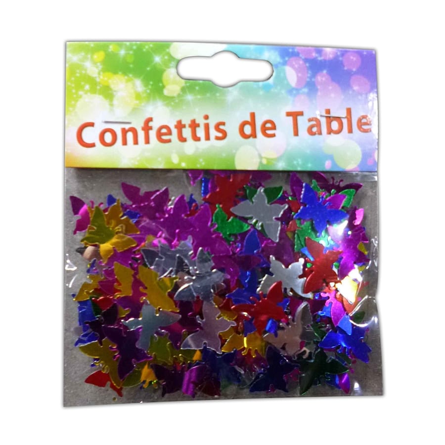Si vous êtes plutôt de ceux qui aiment les choses colorées, qui voient la vie en couleur, votre décoration ne doit pas dévier de cet état d'esprit. Pour décorer une salle de fête, il va vous falloir éparpiller partout, surtout sur les tables, ces confettis en forme de papillon, de différentes couleurs. Un sachet contient 14 grammes de confettis. Si vous voulez encore plus de couleurs, c'est simple, mettez plus de confettis multicolores.