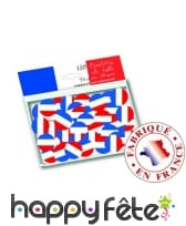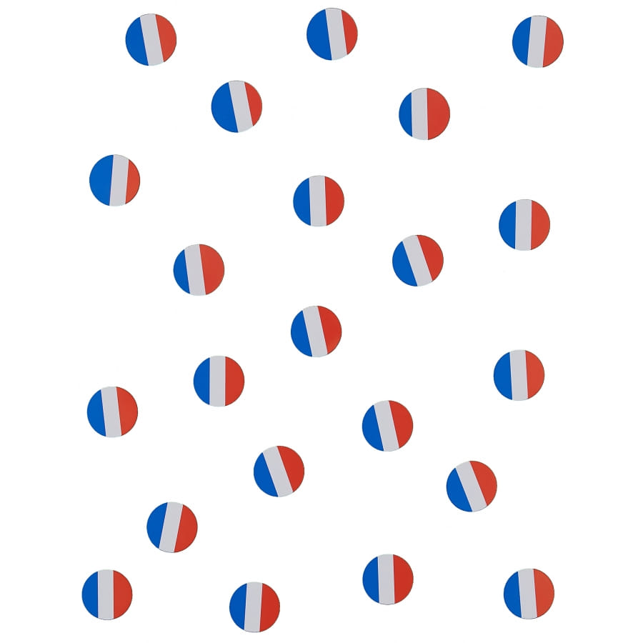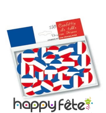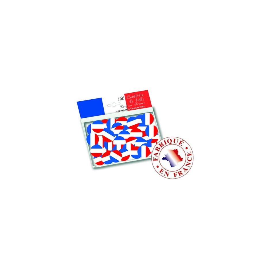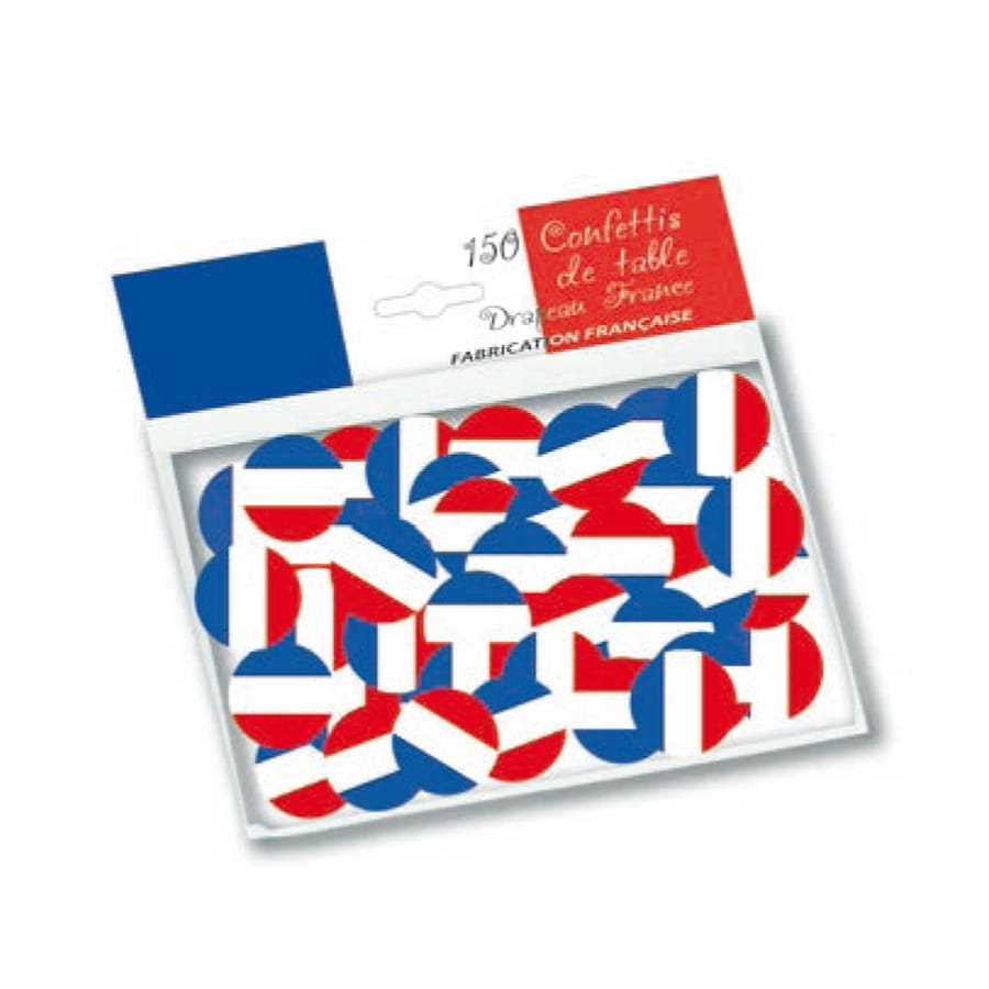 Voici un nouvel accessoire déco qui s'avèrera fort utile pour tous les Français : des confettis aux couleurs du drapeau français, en bleu, blanc et rouge. D'abord, vous pourrez les utiliser pour décorer table et salle pour la fête nationale par exemple, ou encore pour supporter les Bleus à une compétition sportive. Ces accessoires originaux vous sont proposés en sachet de 150 confettis.