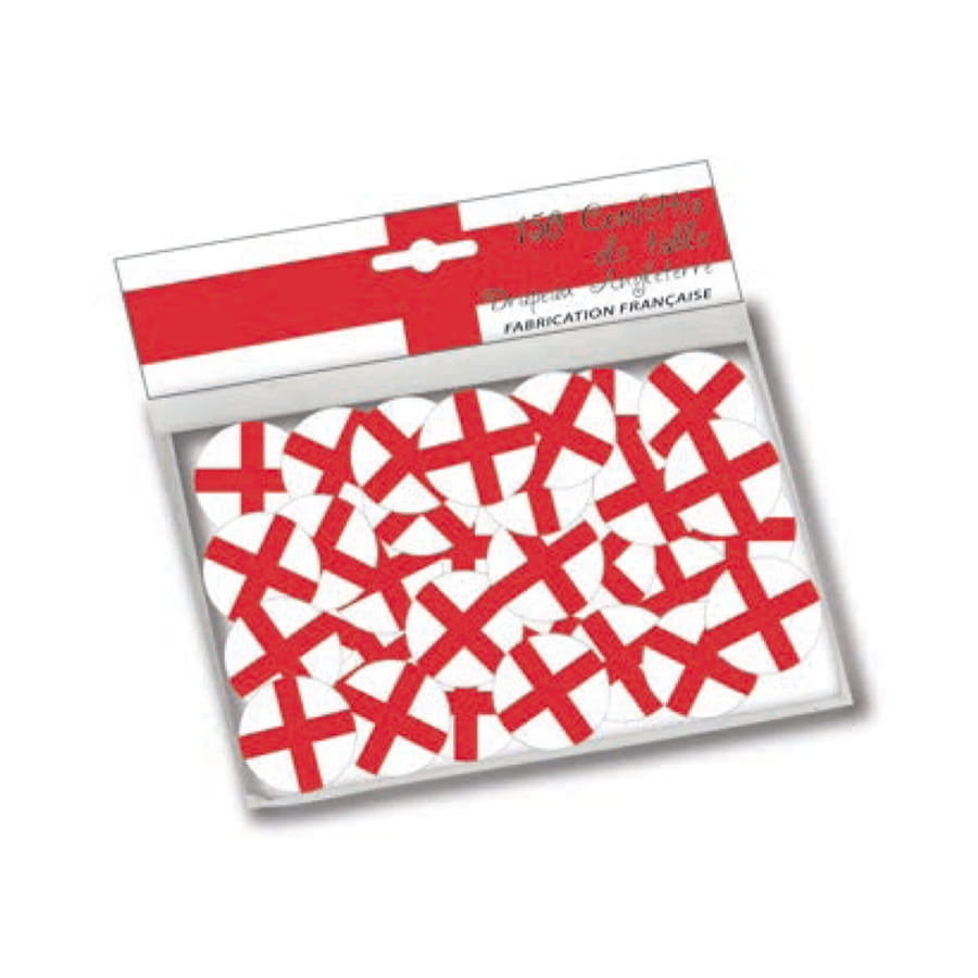 Pour ceux dont le coeur ont un penchant pour le pays de Shakespeare, nous vous proposons ce sachet contenant 150 confettis à l'effigie du drapeau d'Angleterre, mêlant donc le rouge et le blanc. Ces confettis seront idéaux pour fêter une victoire à une compétition sportive, ou encore pour décorer les tables au style british. Magnifique, n'est-il pas ?