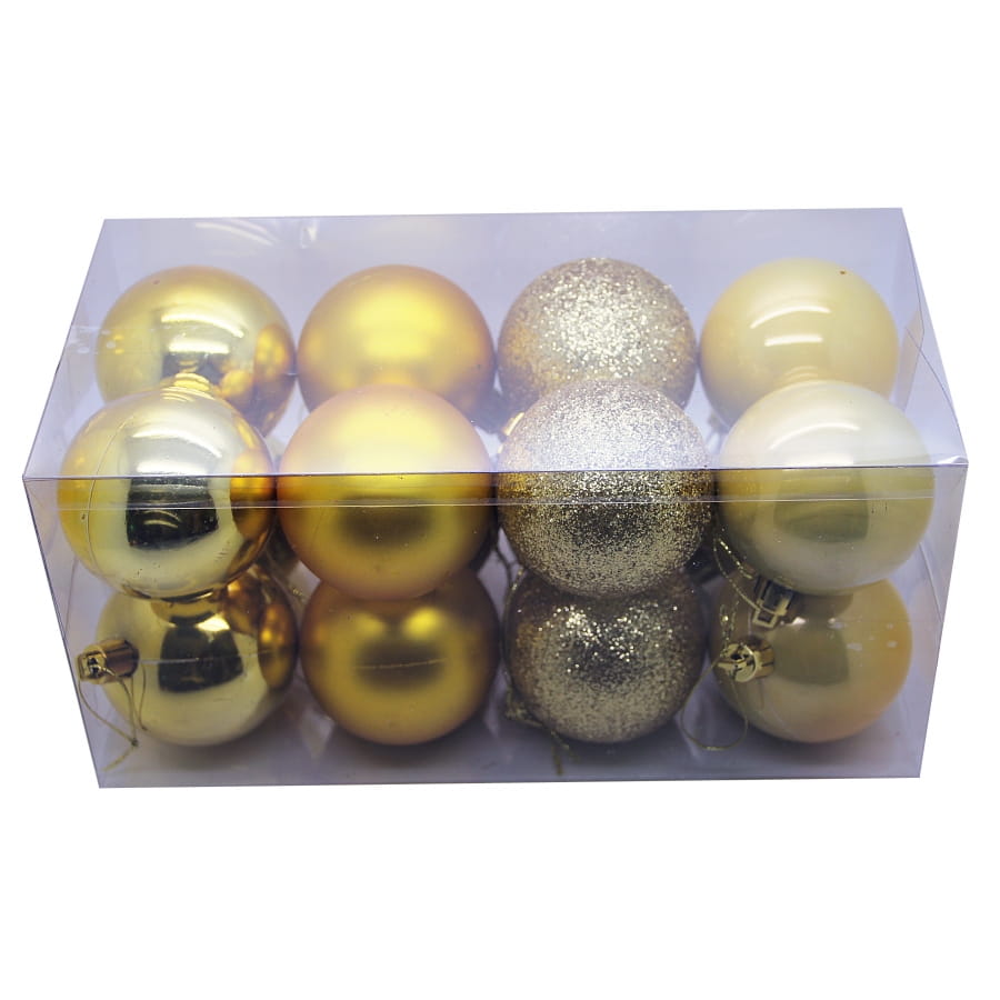 Dans le but de mieux vous aider à décorer votre arbre de Noël ou votre salle de fête à l'occasion des fêtes de fin d'année, nous vous proposons une boîte de 16 boules de Noël de couleur dorée. Chacune des boules mesure 6 centimètres de diamètre. Cependant leur apparence est différente. Certaines d'entre elles sont mates, d'autres brillantes et le reste, pailleté.