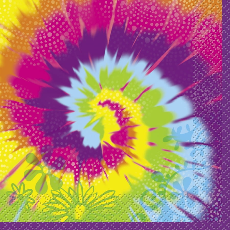Un peu de couleur pour apporter de la bonne humeur ! Pour une fête d'anniversaire, décorez la table avec ces belles serviettes multicolores. Elles sont décorées dans le style "Tye-Dye" des années 70. Cet article, à la fois décoratif et très pratique, est vendu en lot de 16 serviettes, de 33 x 33 cm de dimension chacune.