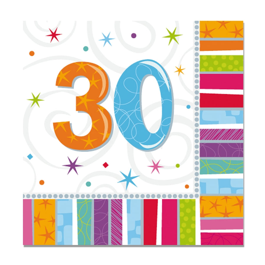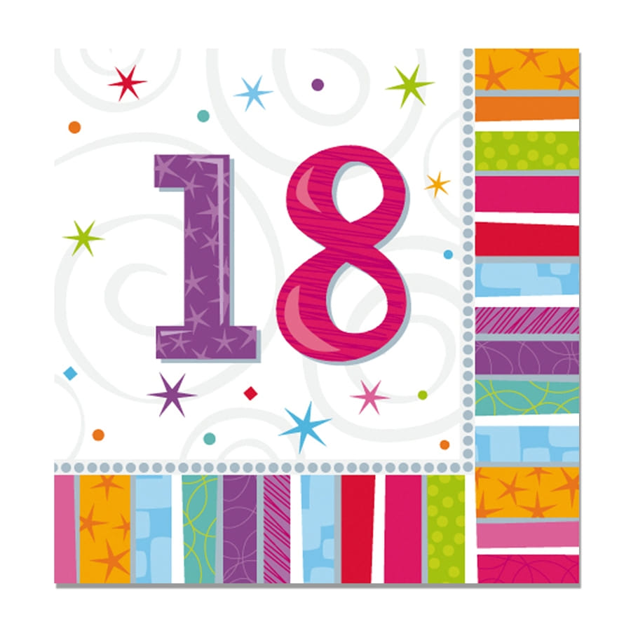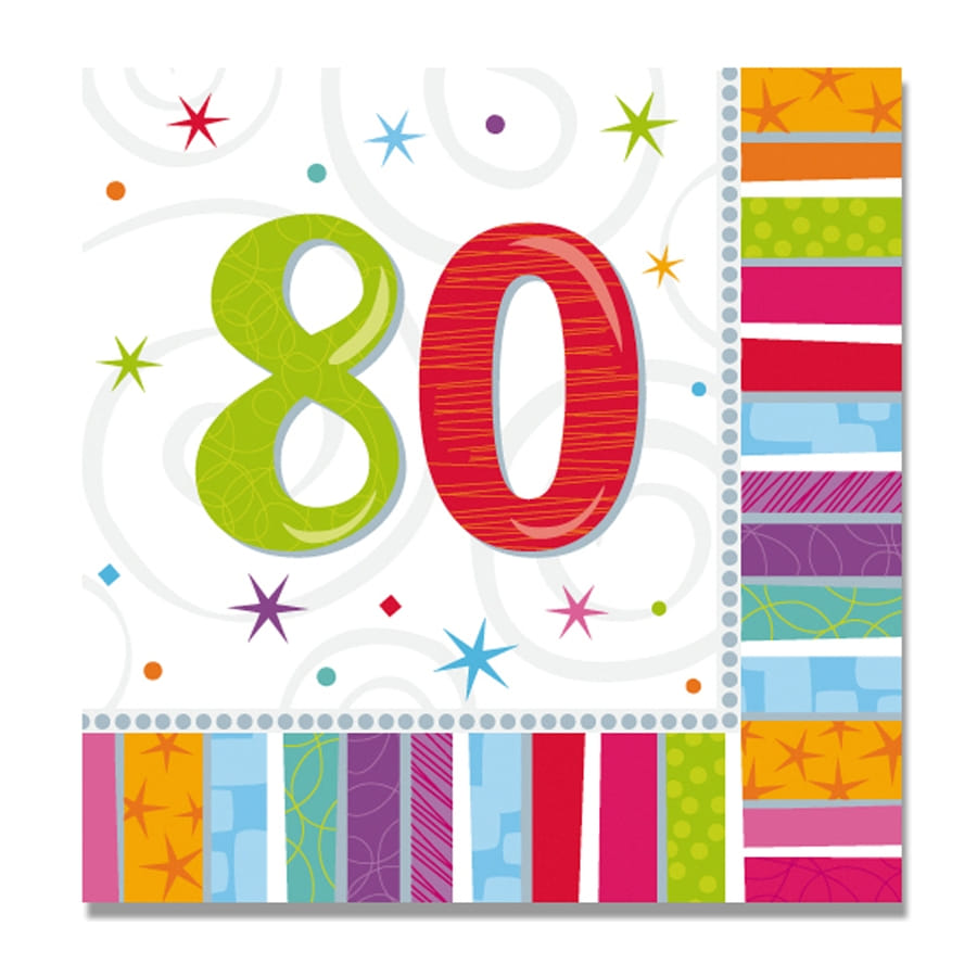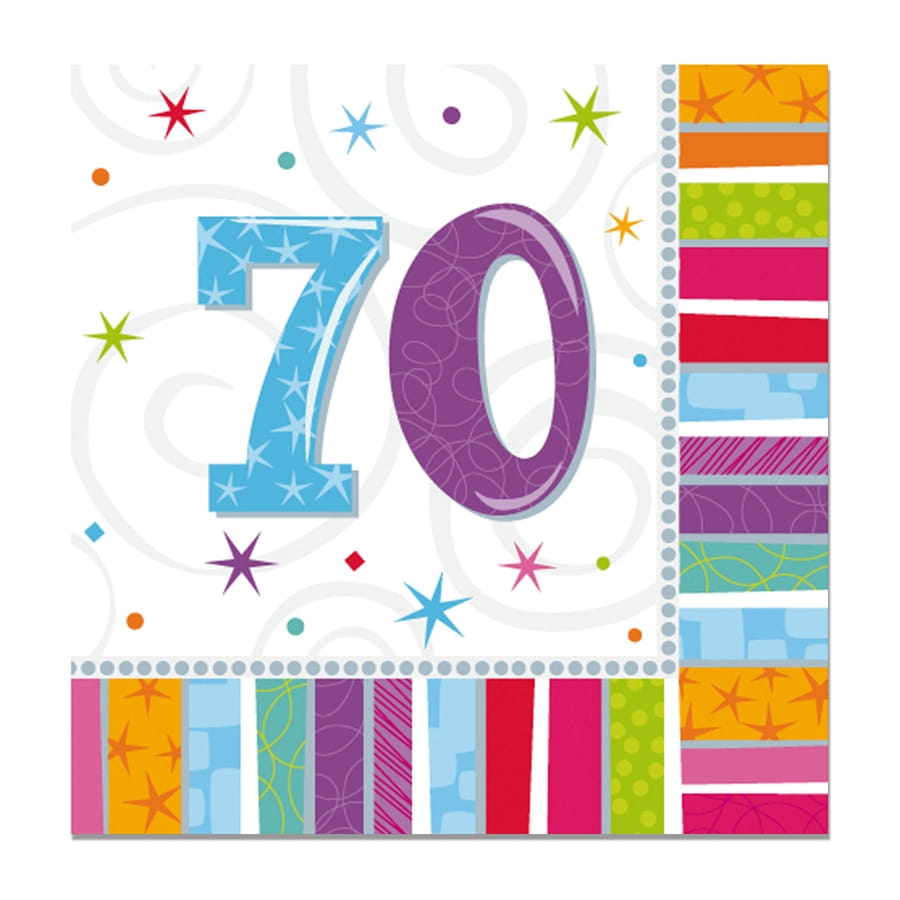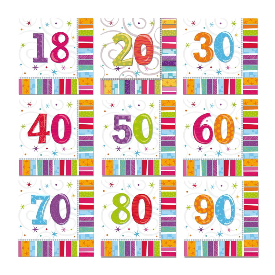 Une fête d'anniversaire ne doit surtout pas être banale. Personnalisez l'événement en vous procurant un lot de 16 serviettes d'anniversaire imprimées âge. Chaque serviette est ornée de multiples couleurs sympas et mesure 33 cm. Vous pourrez choisir un modèle en fonction de votre âge : 18 ans, 20 ans, 30 ans, 40 ans, 50 ans, 60 ans, 70 ans, 80 ans ou 90 ans.