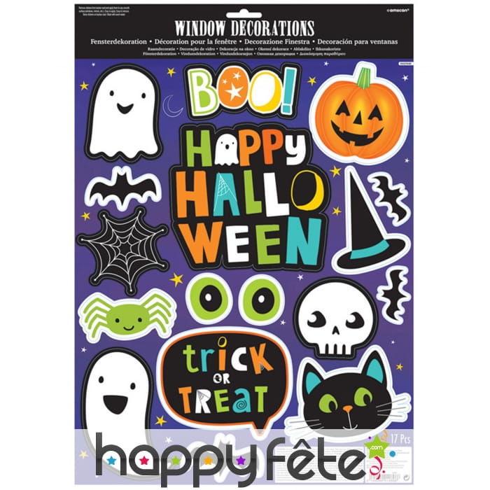 Parmi les stickers on retrouve des fantômes, une citrouille, un chapeau de sorcier, des chauve-souris ou encore l''expression colorée "HAPPY HALLOWEEN".