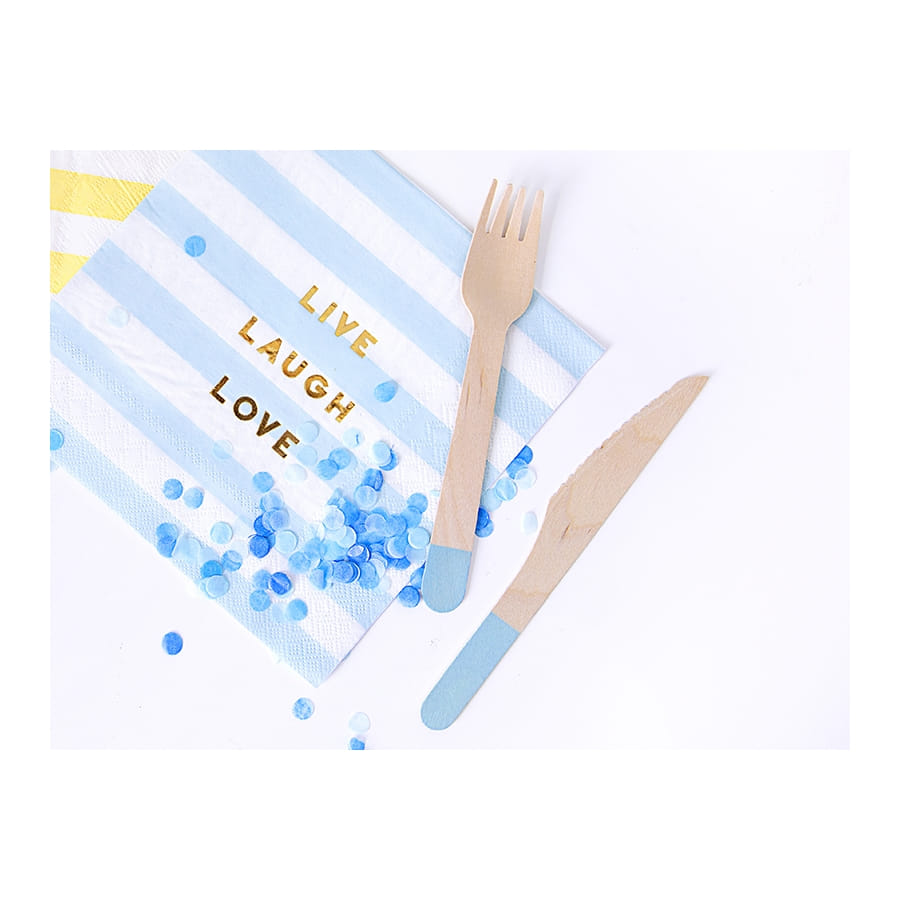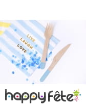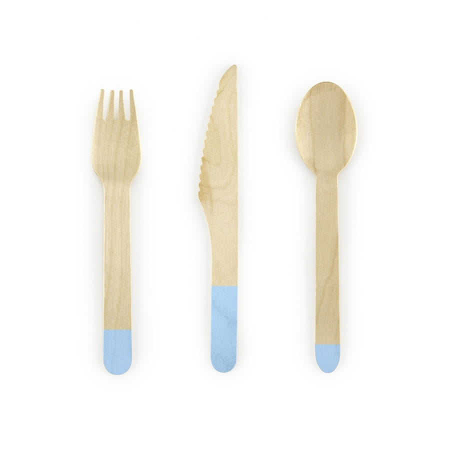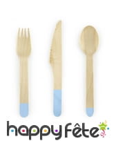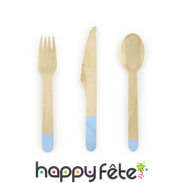 Agrémentez votre décoration grâce à ce lot de 18 Couverts en bois de 16cm avec manche bleu.