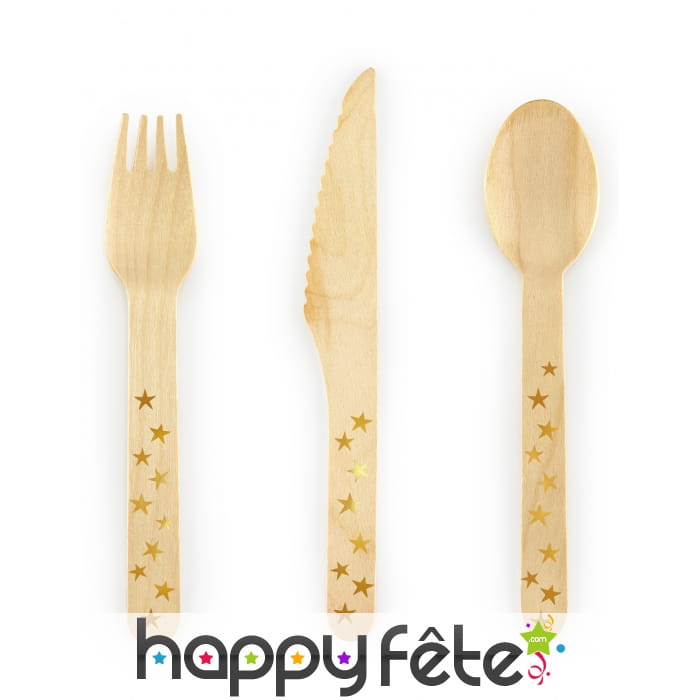 Les avis clients concernant 18 couverts en bois décorés d'étoiles dorées