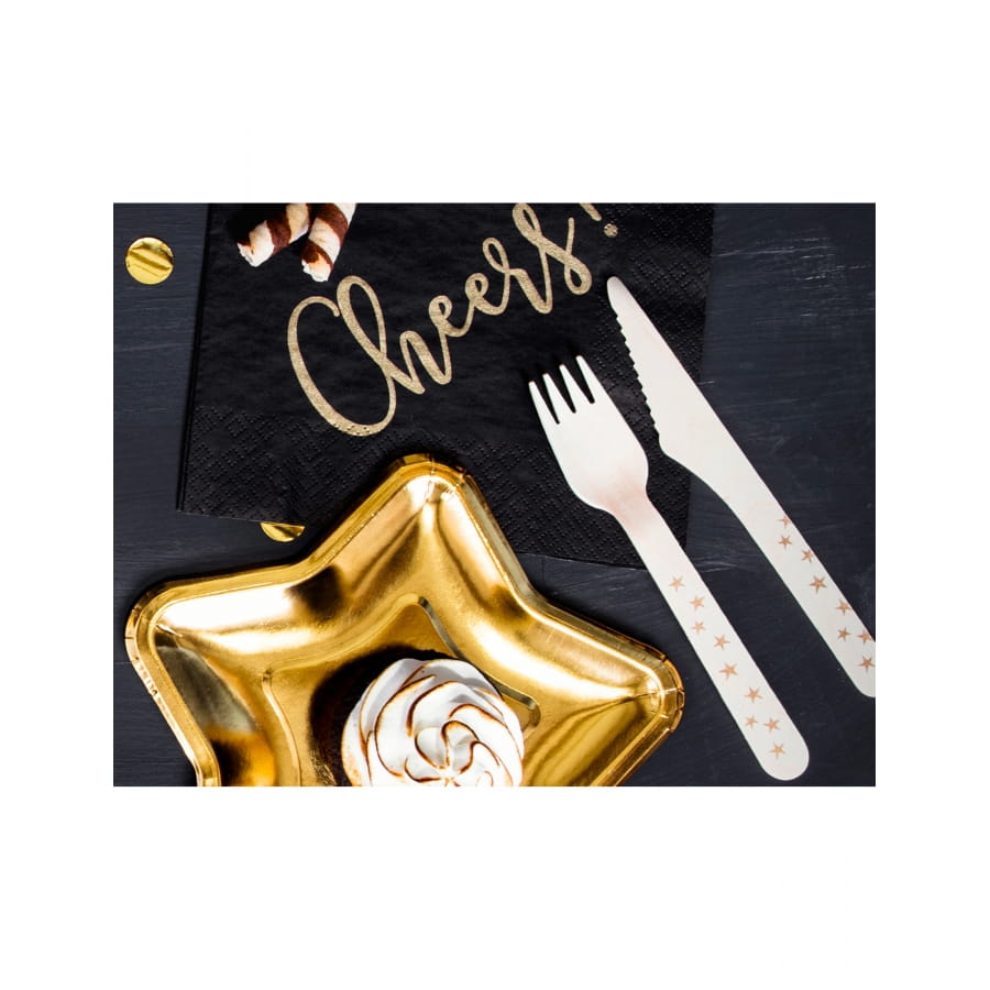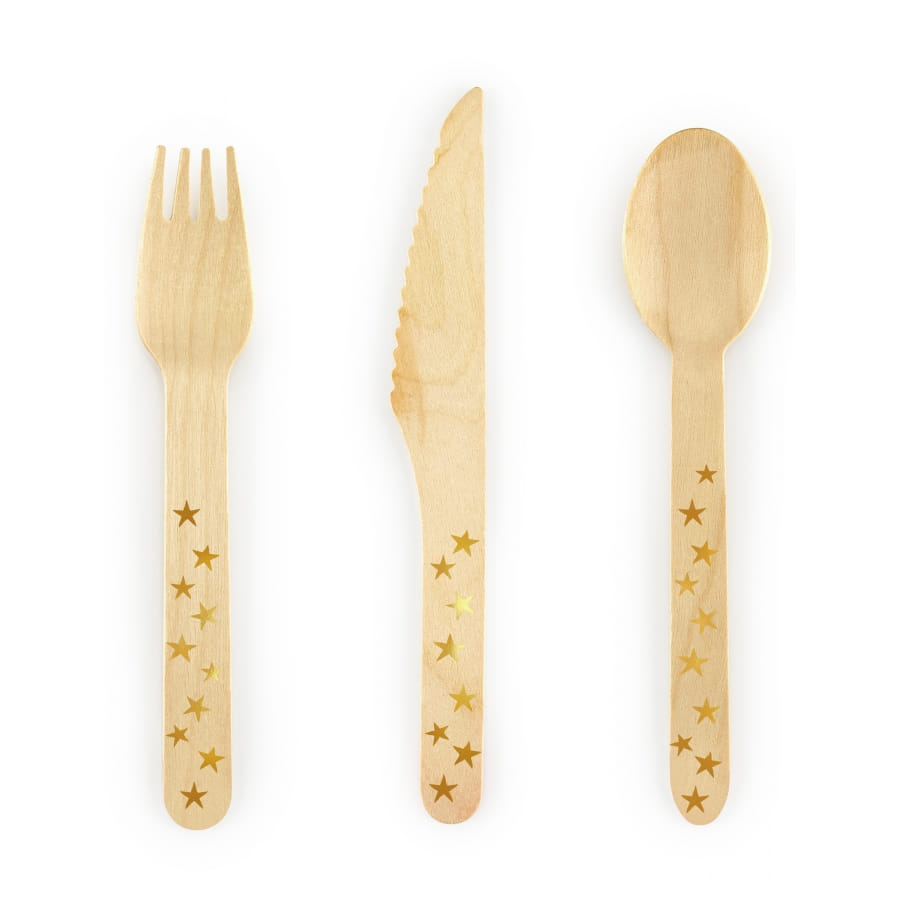 Sublimez votre décoration de Noël avec les 18 couverts en bois décorés d'étoiles dorées.
