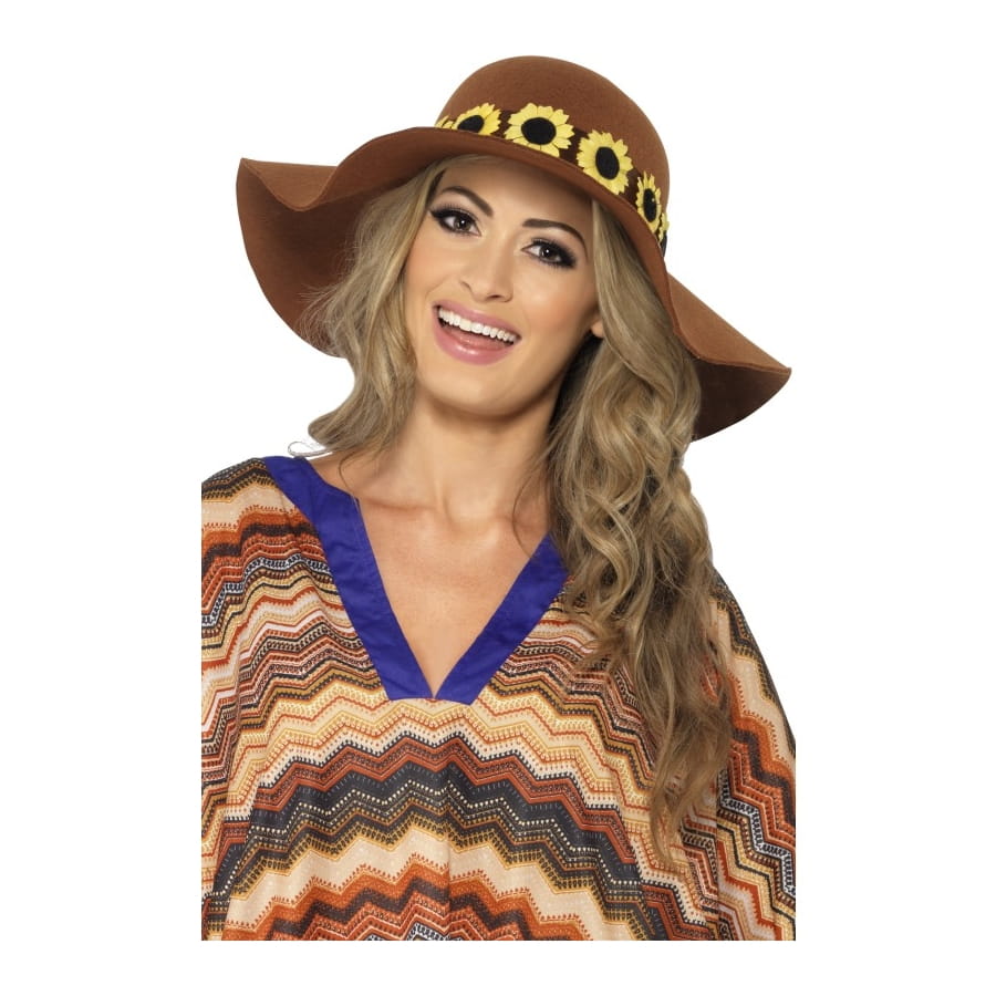 C'est toujours mieux d'avoir un large chapeau comme celui-ci sous le soleil! Il ne s'agit pas de n'importe quel chapeau, il est à thème années 70, et vous pourriez le mettre lors de vos grandes sorties entre fervents défenseurs du peace and love. Il est de couleur marron, décoré d'une bande de jolies marguerites de couleur jaune. La taille proposée est une taille unique standard pour femme.