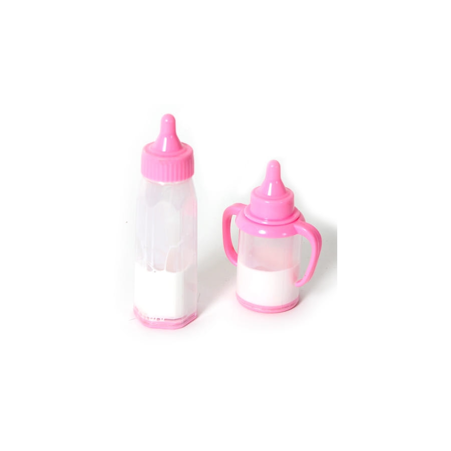 Mais que donner à manger à mes poupées ? Voilà une question que bien des petites filles doivent se poser tous les jours au moment des jeux. Afin d'éviter qu'elles ne se mettent à leur donner leur goûter ou leurs repas,et de salir constamment leurs poupées, offrez à vos jeunes demoiselles ces biberons magiques. Il y a du lait à volonté, c'est magique, ça ne se termine jamais ! Voici un lot de 2 biberons, l'un sans poignées, de 12 cm, et l'autre avec poignées, de 8 cm, tous deux de couleur rose, offerts sur un blister de 20 x 14 cm.