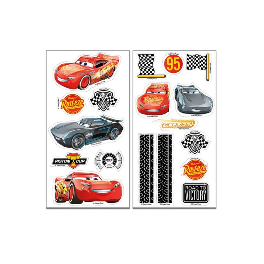 Parmi les blisters vous trouverez Doc Hudson, quelques drapeaux de course de rally, Flash McQueen, des logos et même des traces de pneus!